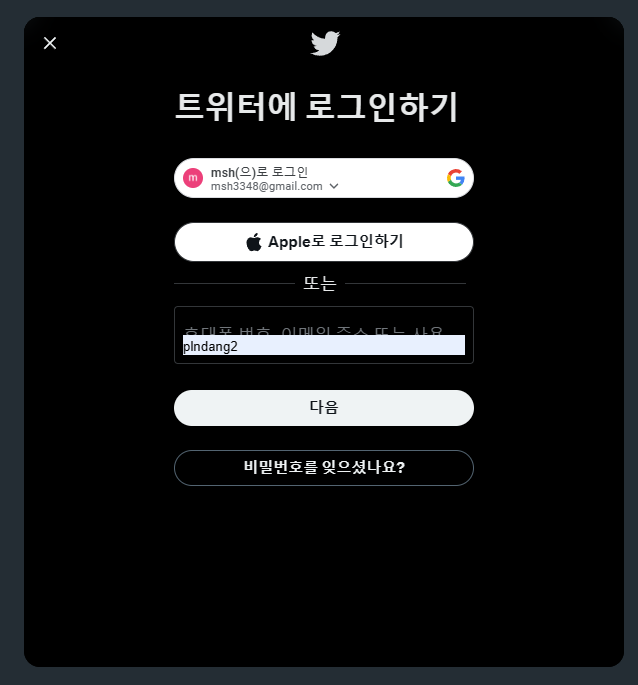 로그인하랜다. 로그인해봤자, 이미 로그인했다고 표시되면사 트위터 메인으로 튕겨낸다!!!